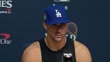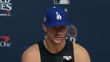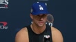 LOS ANGELES, CALIFORNIA - OCTOBER 25: (INTERVIEW) Jack Flaherty #0 of the Los Angeles Dodgers speaks about the energy brought by Dodgers' fans during a post-game press conference after winning Game One of the 2024 World Series against the New York Yankees 6-3 at Dodger Stadium on October 25, 2024 in Los Angeles, California. (Footage by Lucas Mayer/Getty Images)