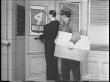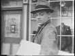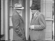James Cagney exits a building carrying a package and stops to listen in on the conversation of two men.