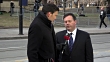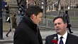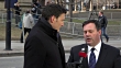Toronto,Canada: Jim Flaherty State Funeral At Saint James Cathedral. Evan Solomon interviews Jason Kenney after the end of the ceremony