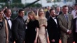 VENICE, ITALY - AUGUST 29: Janine Jackowski, Jonas Dornbach, Pierfrancesco Favino, Angelina Jolie, Director Pablo Larrain and Haluk Bilginer attend the red carpet for "Maria" during the 81st Venice International Film Festival at Palazzo del Cinema on August 29, 2024 in Venice, Italy. (Footage by Mark Case/Getty Images)