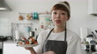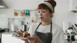 Japanese female influencer and chef presents temaki sushi rolls to her virtual cooking class audience - 4K stock video