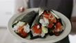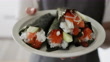 Japanese female influencer and chef presents temaki sushi rolls to her virtual cooking class audience - 4K stock video