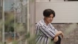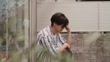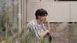 Japanese man sits by the window on Sunday, looking tired and thinking. - 4K stock video