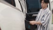 Japanese man unloads his luggage from the back seat of a car. - 4K stock video