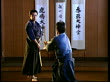 Japanese men in blue robes practices Kendo in hall decorated with Japanese banners (Core Number: LDOR428S)