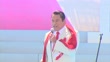 Japanese wrestler-turned-lawmaker Antonio Inoki speaks at the North Korea celebrates the 60th anniversary of the establishment of the General Association of Korean Residents in Japan, its de facto embassy in the absence of diplomatic relations between Tokyo and Pyongyang. The country has also been gearing up in preparation for the 70th anniversary of the Korean Peninsula's liberation from Japan's 1910-1945 colonization in August.