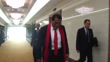 Japanese wrestler-turned-lawmaker Antonio Inoki arrives at Pyongyang's international airport on Sept. 7, 2017. Inoki may meet with North Korea's top official in charge of foreign affairs, amid deepening tension over the country's nuclear and missile development programs.