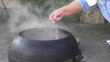 Jeollanam-do, Gangjin-gun, seasoning with grinded salt in korean pot / South Korea - 4K stock video