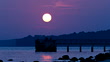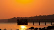 Silhouette of people at a pier awaiting ferry in the early morning, time lapse. Location: Punggol Beach, Singapore