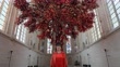 PARIS, FRANCE - APRIL 25: (SLOW-MO) Joana Vasconcelos presents "Tree of Life (Arbre de Vie)", a monumental installation depicting a giant red colored tree, at Sainte-Chapelle De Vincennes on April 25, 2023 in Paris, France. "Tree of life" is a 13-metre-high tree with 100,000 hand-woven and embroidered leaves with red, black and gold colors. It is part of the France-Portugal 2022 season and a tribute to Catherine de Medici. (Footage by Edward Berthelot/Getty Images)
