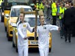 John and Edward Grimes aka 'Jedward' run with Olympic torch as part of torch relay