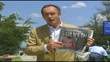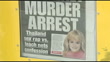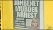 JonBenet Ramsey murder: John Mark Karr confession; INTFront page of newspaper with headline 'Murder Arrest'EXTReporter to camera as holding up newspaper