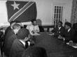 Army coup: Joseph Kasa-Vubu ousted; DEMOCRATIC REPUBLIC OF THE CONGO: Léopoldville:EXTCMS Léonard Mulamba and Mobutu Sese Seko (New President)MS Both talking to groupTS Sese Seko Mobutu surrounded by pressCS Mulamba in groupMobutu Residence:BV Press outside Mobutu's residenceParliament:INTLS Group at table: Mulamba in chairMS Mulamba in chairEXTGV EXTERIOR Parliament buildingINTMS Members including Moïse Tshombe and others in b/g bang tablesCMS Évariste Kimba at microphoneMS Members banging tablesNEG 16mm KIBOKO 12 secs 8 ftSynd length 56 secs 35 ft*Shots used in Tx also print.