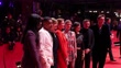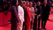 BERLIN, GERMANY - FEBRUARY 19: (SLOW-MO) (L-R) Joshua Odjick, Alexander Karim, Cecile de France, Franziska Weisz, Leonie Benesch, Rosabell Laurenti Sellers, Klaas Heufer-Umlauf and Oliver Masucci attend the Der Schwarm premiere on the occasion of the 73rd Berlinale International Film Festival at Berlinale Palast on February 19, 2023 in Berlin, Germany. (Footage by Christian Ender/Getty Images)