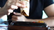 Juicy Chicken Wrap, oil and juice is dripping from the tortilla