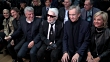 Karl Lagerfeld, Bernard Arnault,Helene Mercier Arnault, Future, Bella Hadid, Sidney Toledano, Robert Pattinson and Maria Grazia Chiuri front row of the Dior Menswear Fall Winter 2018 Fashion Show in Paris