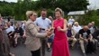 NEWTON ABBOT, ENGLAND - JUNE 24: Katie Hopkins greets attendants during a Reform UK rally, on June 24, 2024 in Newton Abbot, England. Nigel Farage has faced criticism in recent days for claiming NATO provoked Russia's President Putin into invading Ukraine. However polls show Reform UK are closing the gap on the Tories and are now within three points of the ruling party. (Footage by Finnbarr Webster/Getty Images)