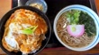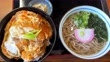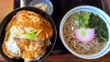 Katsudon which is Pork cutlet on rice.and Japanese soba noodles set meal in Japan