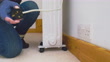 Plugging in an electric heater in a cold room.