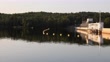 Kenogami lake dam at sunset on a Summer evening, with cottages in the distance filmed in 4k resolution video.