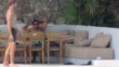 MYKONOS, GREECE - JULY 11: (EXCLUSIVE) (EDITORS NOTE: audio/music licensing is not included.) Kevin Trapp's model girlfriend Izabel Goulart plays with a ball and racquet in a bikini on July 11, 2023 in Mykonos, Greece. (Footage by The Mega Agency/GC Video)