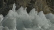 Expedition Everest: Khumbu Icefall; NEPAL: Himalayas: Khumbu Icefall:EXTClose up of whorls of meringue-like ice at Khumbu Icefall (glacier) / General view of peaks of ice against low sun in sky [brief mix/mix soundtrack SOT] / Close up of icicles / Mountain peaks / Column of ice (serac) with mountain in the background / General views of expanse of meringue-like ice at Khumbu Icefall / Low sun in blue sky PAN Khumbu Icefall / Wall of ice / Surface ice and snow blowing down off side of mountain