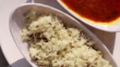 Kidney bean curry or rajma or rajmah chawal table top spin isolated on white background.