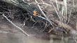 Male kingfisher sitting on the branch of a tree, jumps into the water and clean his feathers.