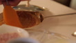 Kitchen. Bread brushed with caramel before serving with caviar.