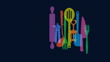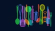 Animated Tracking shot of overlapping silhouettes of Kitchen Utensils. Kitchen, Cooking, Butcher, Meal, Food, Meat, Fish, Cutlet, Kitchenware Department, restaurant,