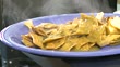 Kitchen preparation of a breakfast plate and other chicken taco prep.