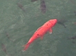 A large Japanese Koi carp is passing by.