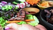 Korean Style Bulgogi Short Rib Lettuce Wrap with Kimchee - 4K stock video