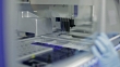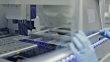 This video is a sliding close-up of a DNA sample extraction machine in motion while being operated by a lab technician
