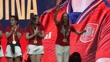 MADRID, SPAIN - AUGUST 21: (EDITORS NOTE: audio/music licensing is not included.) Laia Codina gets on stage during the Spanish women's football national team celebration of the FIFA Women's World Cup 2023 victory on August 21, 2023 in Madrid, Spain. (Footage by Javier Mostacero Carrera/Getty Images)