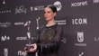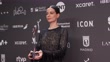 MADRID, SPAIN - APRIL 22: Laia Costa holds the Best Actress award for the film 'Cinco Lobitos' during Platino Awards for Ibero-American Cinema 2023 at IFEMA Palacio Municipal on April 22, 2023 in Madrid, Spain. (Footage by David Benito/Getty Images)