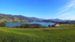Lake Gruyere (Lac de la Gruyère) the Alps in backdrop - 4K stock video