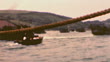 Landing Craft Mechanized take to the channel / LST ships with blimp cover / Operation Overlord WWII on June 05, 1944 in Dartmouth, Devon (Footage by Getty Images)