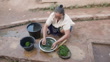 Laotian woman cleaning spirogyra freshwater algaea, remote village in Northern Laos - 4K stock video