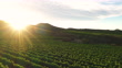 Late afternoon sunset over the vineyards on the hillside - 4K stock video