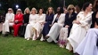 PARIS, FRANCE - SEPTEMBER 30: (EDITORIAL USE ONLY - For Non-Editorial use please seek approval from Fashion House) (AUDIO OMITTED) (L-R) Lauren Wasser, Grace Chatto, Patti Hansen, Alexandra Richards, Nava Mau, Jodie Comer, Danai Gurira, Anna Wintour, Lily Gladstone and Rebecca Hall attend the Gabriela Hearst Paris Womenswear Spring-Summer 2025 show as part of Paris Fashion Week on September 30, 2024 in Paris, France. (Footage by Davide Lamazzi/Getty Images)
