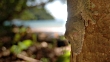 Leaf tailed gecko (Uroplatus) clings to tree trunk in forest, Madagascar - HD stock video