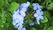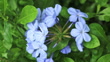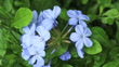 A group of delicate light blue Light Blue Cape leadwort, white plumbago (Plumbago auriculata) flowers blooming vibrantly amidst lush green leaves. Perfect for nature themes, floral compositions, botanical references, or tropical garden visuals in editorial or commercial design.