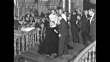 Lighted sign glows against night sky: "Ambassador Cocoanut Grove Salute to A Star is Born Judy Garland" / actress and star of "A Star is Born," Judy Garland, walks down steps with her husband Sidney Luft as they enter the Cocoanut Grove nightclub; photographers shoot photos