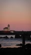 A beautifully relaxing shot of The Coquille River Lighthouse in Bandon, Oregon just before Sunrise. The sky is pink and orange, sea birds fly across the frame, the waves gently crash against the rocks on the beach, and The Lighthouse stands on the shore across the water. It's idyllic. Shot at 60fps per to second so you can slow it down if necessary