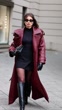 BERLIN, GERMANY - OCTOBER 9: (SLOW-MO) Lisa Mottl wears a burgundy red trench coat, Kaoa, a black turtleneck by Calzedonia, a Pull and Bear skirt, tights by Falke, a Chanel vintage bag, knee-high black boots by Sezane, sunglasses by Vehla, and leather gloves by & Other Stories on October 9, 2025 in Berlin, Germany. (Footage by Christian Vierig/Getty Images)