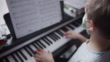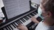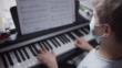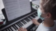 Little boy practicing playing digital piano during the COVID-19 pandemic. The boy is playing song by Franz Schubert.Shot with BMPCC4K at RAW Q0
