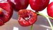 Little Cute Worm on Cherry - Cherry Fruit Fly Larva - 4K stock video