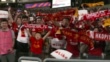 HONG KONG, CHINA - JULY 22: (COMPILATION) Liverpool FC Hong Kong fans cheer during pre match Leicester City Premier League Asia Trophy at Hong Kong Stadium on July 22, 2017 in Hong Kong, China. (Footage by Liverpool FC via Getty Images)