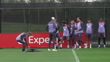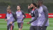 Liverpool team training session; ENGLAND: Liverpool: AXA Training Centre:EXTPAN to Liverpool first-team onto pitch / Jurgen Klopp (manager, Liverpool FC) along to team including Mo Salah (Mohamed Salah, forward), Trent Alexander-Arnold (midfielder), Andy Robertson (defender) Joe Gomez (defender), Virgil van Dijk (defender), Ibrahima Konate (defender), Kostas Tsimikas (defender), Calvin Ramsay (defender), Joel Matip (defender), Nathaniel Phillips (defender), Waturu Endo (midfielders), Thiago Alcantara (midfielders), Dominik Szoboszlai (midfielders), Alexis Mac Allister (Midfielders), Curtis Jones (Midfielders), Harvey Elliott (Midfielders), Arthur Melo (Midfielders), Stefan Bajcetic (Midfielders), Ben Doak (Midfielders), Cody Gakpo (forward), Diogo Jota (forward), Luis Diaz (forward), Darwin Nunez (forward) running onto pitch / GVs of team teaning / Andreas Kornmayer (head of fitness and conditioning) running
